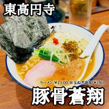 東京都杉並区 東高円寺駅の付近に有るラーメンの店、豚骨 蒼翔(あおと)のワンタンチャーシューメン。 豚のゲンコツと背ガラを使用したスープに醤油ダレを加え、三河屋製麺の国産小麦を100%使用した中太麺、3種類のチャーシュー(熟成モモの吊し焼き、肩ロースとバラ)、手包の自家製肉ワンタン、青菜と海苔を乗せたこの店のオススメの豚骨醤油ラーメン。 スープはしょっぱかったが濃厚で麺はモチモチ感有り、色々なチャーシューやワンタンも食べられたので満足。値段は1500円するが味は美味かった。人気店なので混雑する。