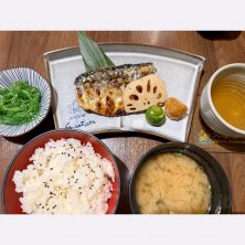 鯖塩焼き 焼鳥(鶏もも、ネギ)※写真なし Dセット(ご飯、味噌汁、冷奴) 海藻のナムル 番茶 2026.02.07. Sat