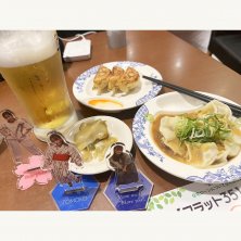 🍽️晩酌セット(餃子+ビール)+皿ワンタン ▶︎Ailaさん企画の智さんワンマン応援ライブ、でした💫わちゃわちゃした空間が苦手ではあるけれど智さんの歌声が聴けるとあれば駆け付けるでしょう😯😛実際智さんの歌声を聴くと元気になるよ❣️ #ともファミリー飯テロ部 #アクスタ智子