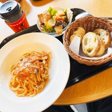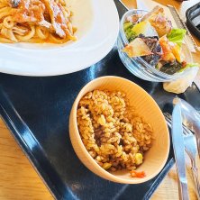 パン🍞とピラフは取り放題。 多分、パラパラピラフなんだろうけど、ジャーの中でカラカラピラフになってた。出来たては美味いんだろうな。パンはかなり美味い。