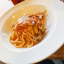 アオリイカのトマトクリームパスタ モチモチでコシもあって良い食感。味も美味い╰(*´︶`*)╯♡