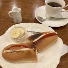 ホットドッグセット 珈琲 今日は喫茶探偵団活動日だったけど みんな都合悪くなったので 今月はお休みになりました。 時間ができたので尼崎でモーニング、 池原悠太&Omult Venzer展。