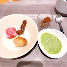 晩御飯ブュッフェの締めのデザート 抹茶プリン めちゃくちゃあっさり 甘さ超控え目 わらび餅黒蜜きな粉 一口きな粉おはぎ かりんとう ベリー大福 お腹いっぱい ご馳走様でした💕