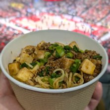 「麻婆焼きそば」 今日はバスケットの試合を見に来ています。 夕飯は会場内のお店で買った麻婆焼きそば。 本当はホルモン焼きそばが食べたかったけど売り切れだったので… 麻婆焼きそばも美味しかった! さて、これから試合は後半戦! 双方ともがんばれー!