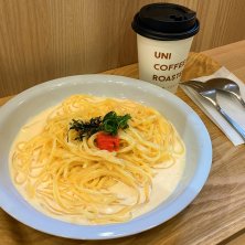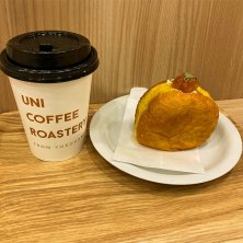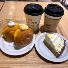海老名のUNI COFFEEはガラガラ。 ✳︎かためのプリンアラモード ✳︎アイスカフェラテ ユニドーナツは列ができてた…。 カフェスペースでユニドーナツを食べれたらいいのになぁ…。
