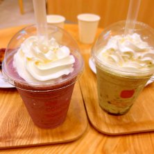 ホイップクリーム ハニーレモンホイップ レモンと紅茶のタルト 水出しコーヒー ホワイトモカラテ 平日はドーナツもイートイン出来るようになっていたので😋 ドーナツは前にテイクアウトした時よりも油臭く食べた感じも重たい。 タルトはおいしかった!