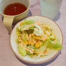 お昼はサイゼで。 庭のボーボーの雑草を刈ってたら腰痛くなった!