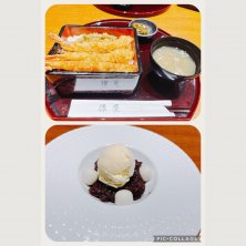 群馬の息子のところに来ています〜 海老天重と小豆白玉アイス。