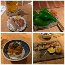 7月30日は午後仕事をお休みして久々会う友達と3人で昼飲みです つきだしは鯵とイサキのお刺身 おつまみにすぐ出る葉ワサビクリームチーズ サザエの… カウンター内の囲炉裏みたいなとこで焼いてくれるいろいろは 穴子炙り焼き 鴨 イサキ 豚 ビールのあとはスパイス焼酎やジンをソーダ割りで みんな好きなもの飲んで会えなかった間のいろんなことをおしゃべりしました 店員さんの接客もよくて良いお店でした✨