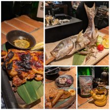 [火の肴] 山賊ガイヤーン🐥 (タイの焼き鳥🇹🇭) 原始焼きはじっくりと火入れ🔥🦣🍖 特製タレに漬け込んであります🐱 レモンをかけて🍋 お好みでナンプラーをつけて😋 ナイフ&フォーク付き🍴 手で持ってかぶりつきたい🤍🤣