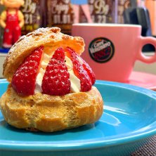 実はイチゴはそれほどでもない でも惹かれてしまったのはシュークリームは守備範囲だから FB広告でクレマがキチンと出せるマキネッタが出てくる 裏技と言われるフィルター使ったりしても我が家では出没しないから凄く惹かれてる