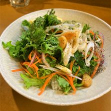 フレッシュガパオランチ。ガパオをカスタマイズして食べるお店です。ソースをジェノベーゼプラスなんちゃらにして、季節野菜をトッピングしました。