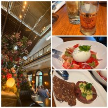 ビーフステーキタルタル ブラッターサラダ ジンジャエール リーズからの電車、冷房がぜんぜん効かなくて汗だく!駅近くのこちらのお店で今夜はドイツ料理。 ここも冷房なーい! 普段トマトのサラダ食べない次女が、このサンマルツァーノはパクパク。 ハリーポッターがホグワーツに旅立つキングクロス駅の前。