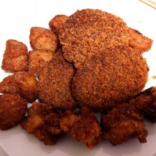 じゃがいも🥔コロッケ2個140円 ポテト🥔フライ10個200円 鶏もも唐揚げ100g170円 ハムカツ1枚80円 合計590円