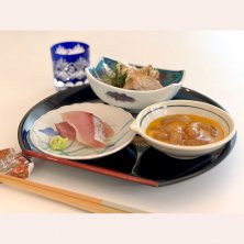 お手塩盛り ・肉大根 ・いぶりがっこポテサラ ・イカ一夜干し焼き ・自家製鶏ハム ・おけさ柿とりんごのサラダ ・佐渡の牡蠣佃煮 ・佐渡サザエのオリーブオイル煮 ・ミニトマトガーリック ・春菊と柿の素のお浸し ・真鯛のゆず焼 ・本マグロシーチキンと蕪の葉和え ・レンコンのキンピラ ・藻塩