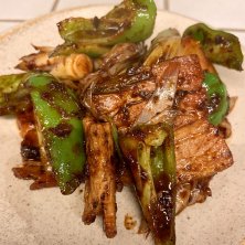 四川風回鍋肉🇨🇳🐷🌶️🔥 ネギとピーマンと塩漬け豚肉を豆豉ソースで炒めた、キャベツを使わない四川の回鍋肉です✋ 濃厚な旨みと辛さでライスやビールが止まらなくなる美味しさです✨