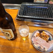 11/3 京橋はしご① オアシスセット(4種盛り、大瓶ビール) 1,100円 定期的に行く自分で焼いて食べる松阪式味噌ダレの鳥焼肉店 安心の京橋価格 安すぎ🤣