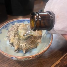 サザエ食べたら出汁とお酒で🍶 なにかがポコポコなってた