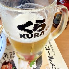 くら寿司でちょい飲み。このお店に限らず、初めて伺いました。なんと、生ビールもレーンで運ばれてきて、まるでゲームセンターにいるようでした。