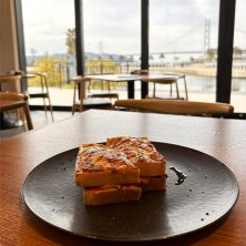 明石海峡大橋を眺めながらカフェで休憩 アイスクリームはバニラじゃなくてレモンシャーベットだったのでさっぱりしました!