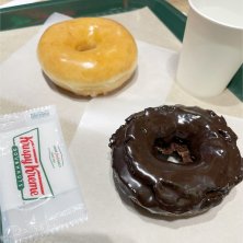 夜のおやつ。 普段なら暑くて持ち歩けないから買えないけど、旦那氏のお迎えがあったので、保冷剤を家から持ってきて貰えました😊 宇治抹茶のオールドファッション、オススメです☺️